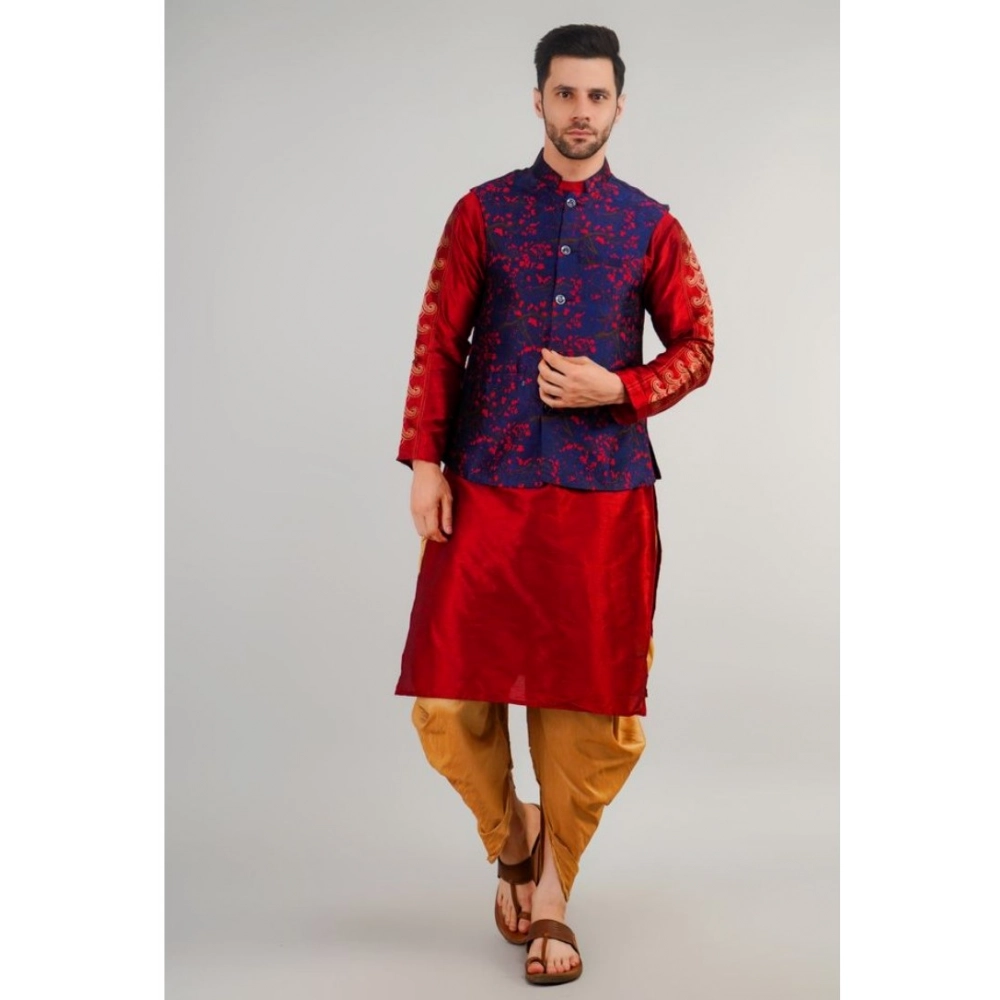 Men’s Jacquard Self-Design Sleeveless Mandarin Neck Waistcoat
