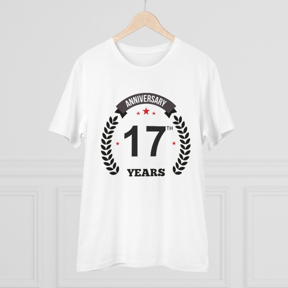 Men’s PC Cotton 17th Anniversary Printed T Shirt (Color: White, Thread Count: 180GSM)