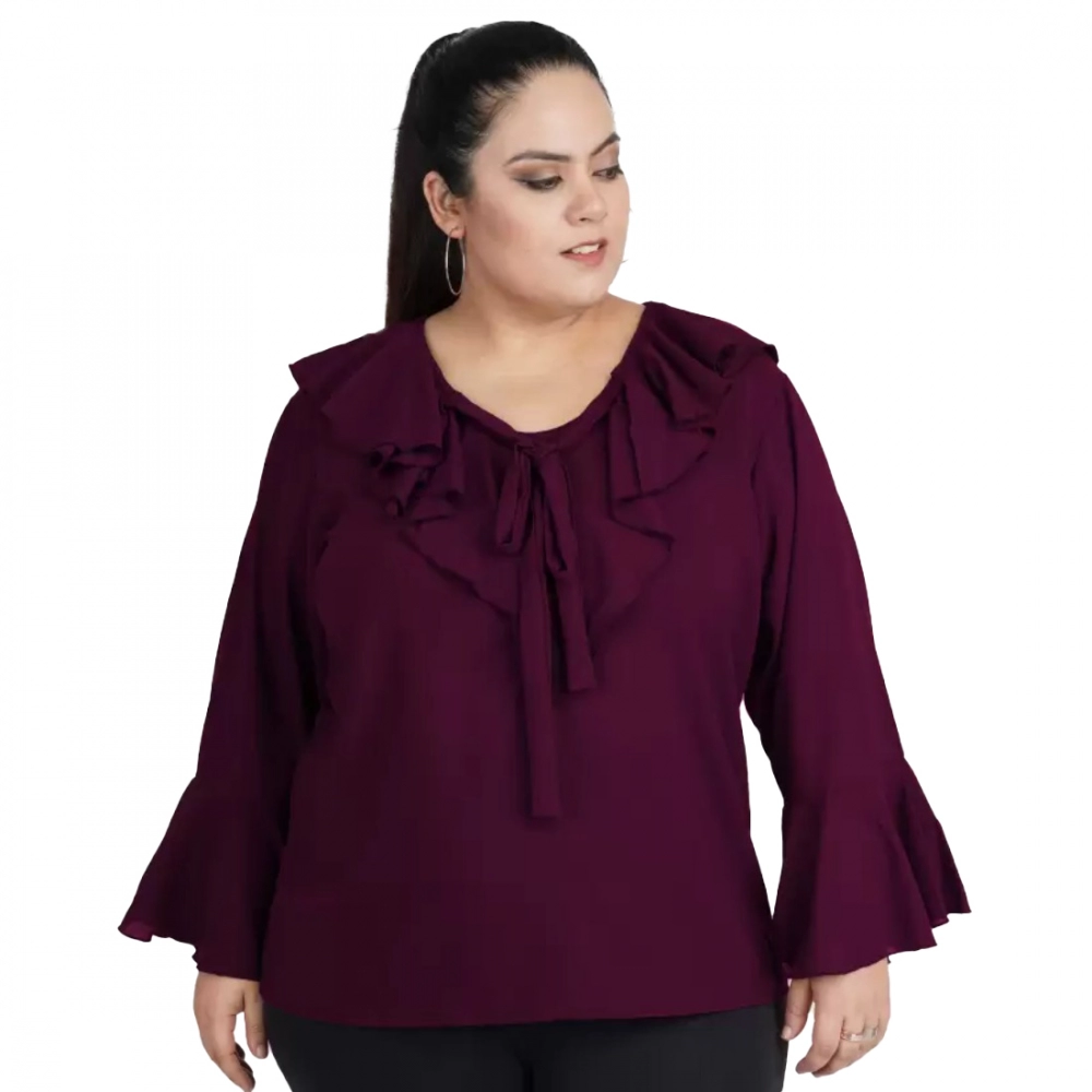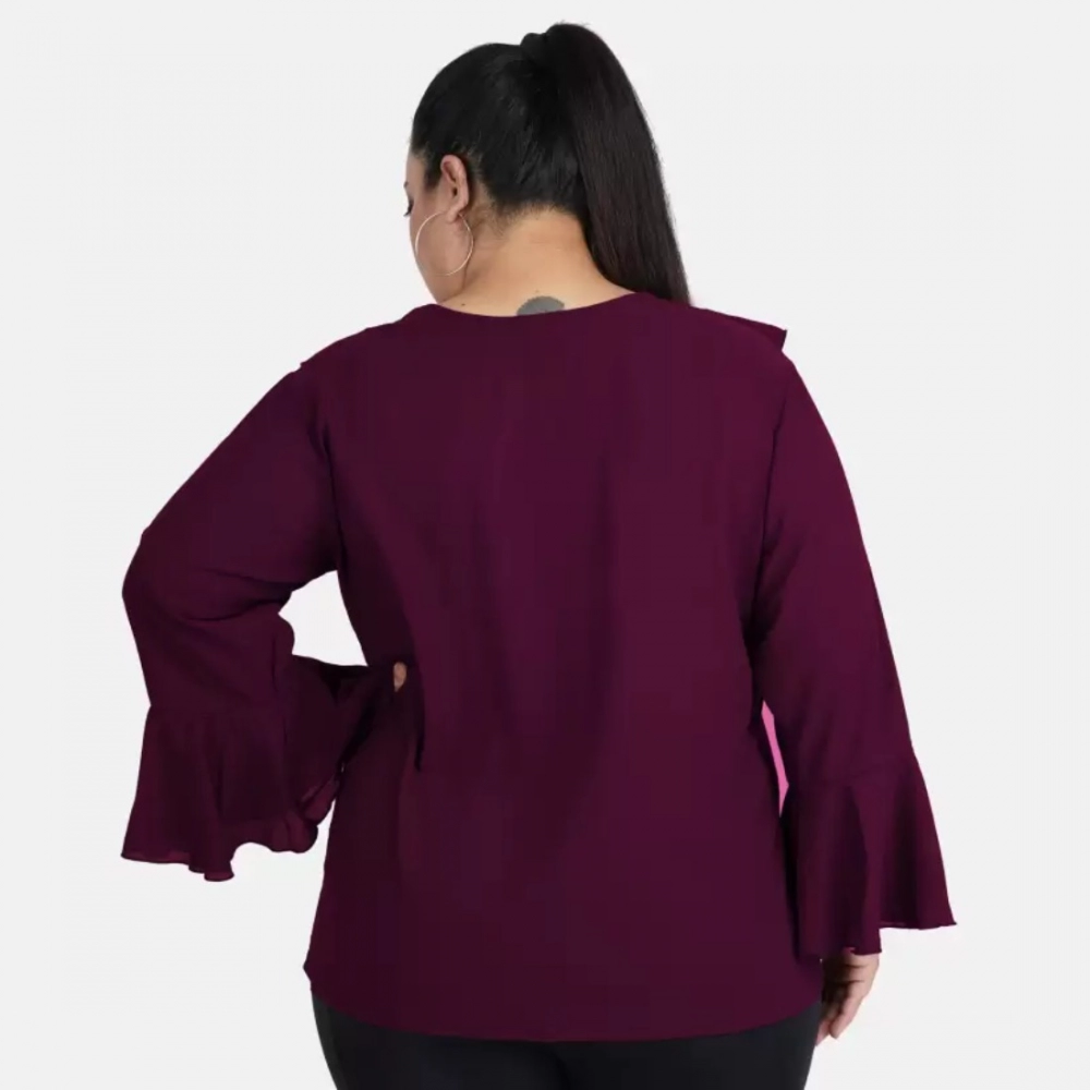 Generic Women’s Casual Bell Sleeve Solid Purple Top