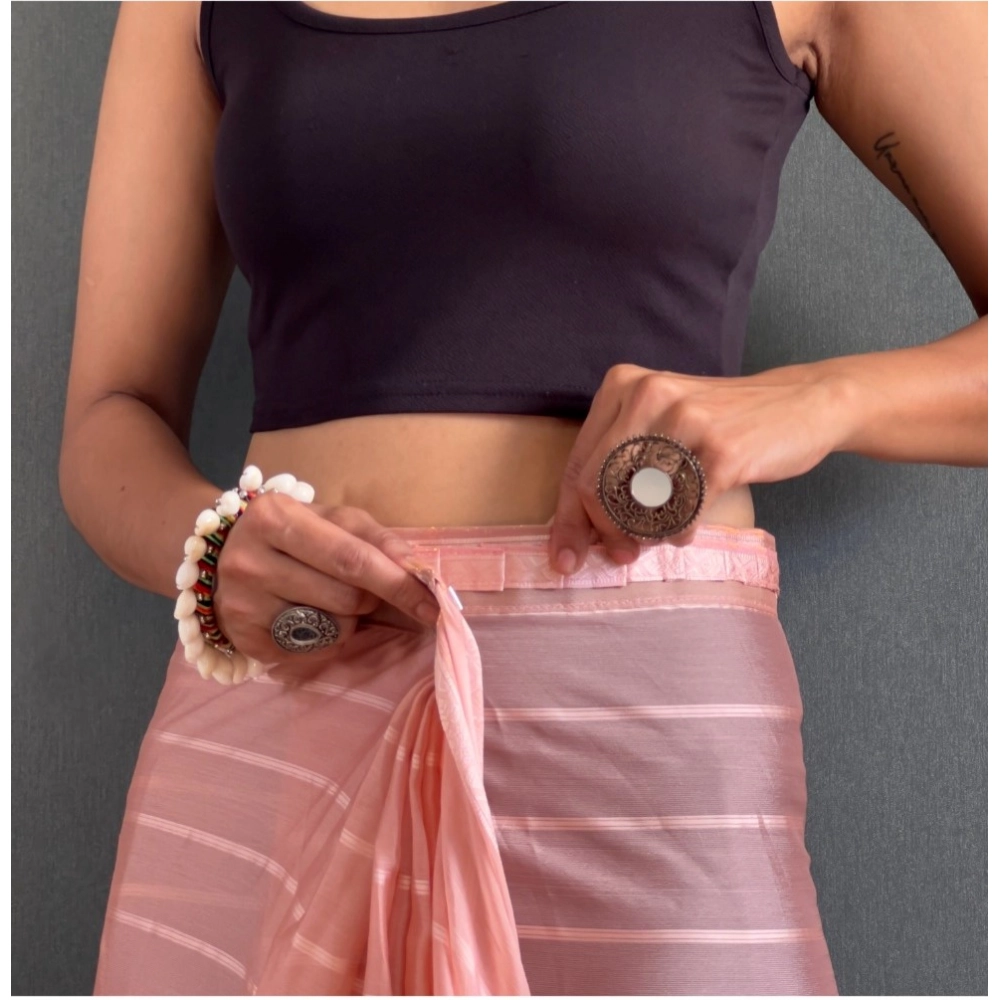 Women’s Chiffon Striped Ready to wear Saree With Unstitched Blouse 5.5 Mtr