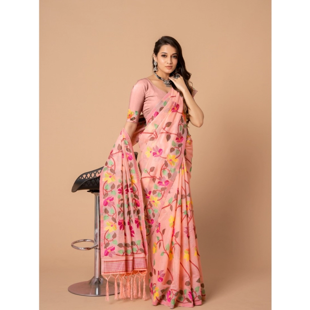 Generic Women’s Cotton Printed Saree With Unstitched Blouse (Pink, 5-6 Mtrs)