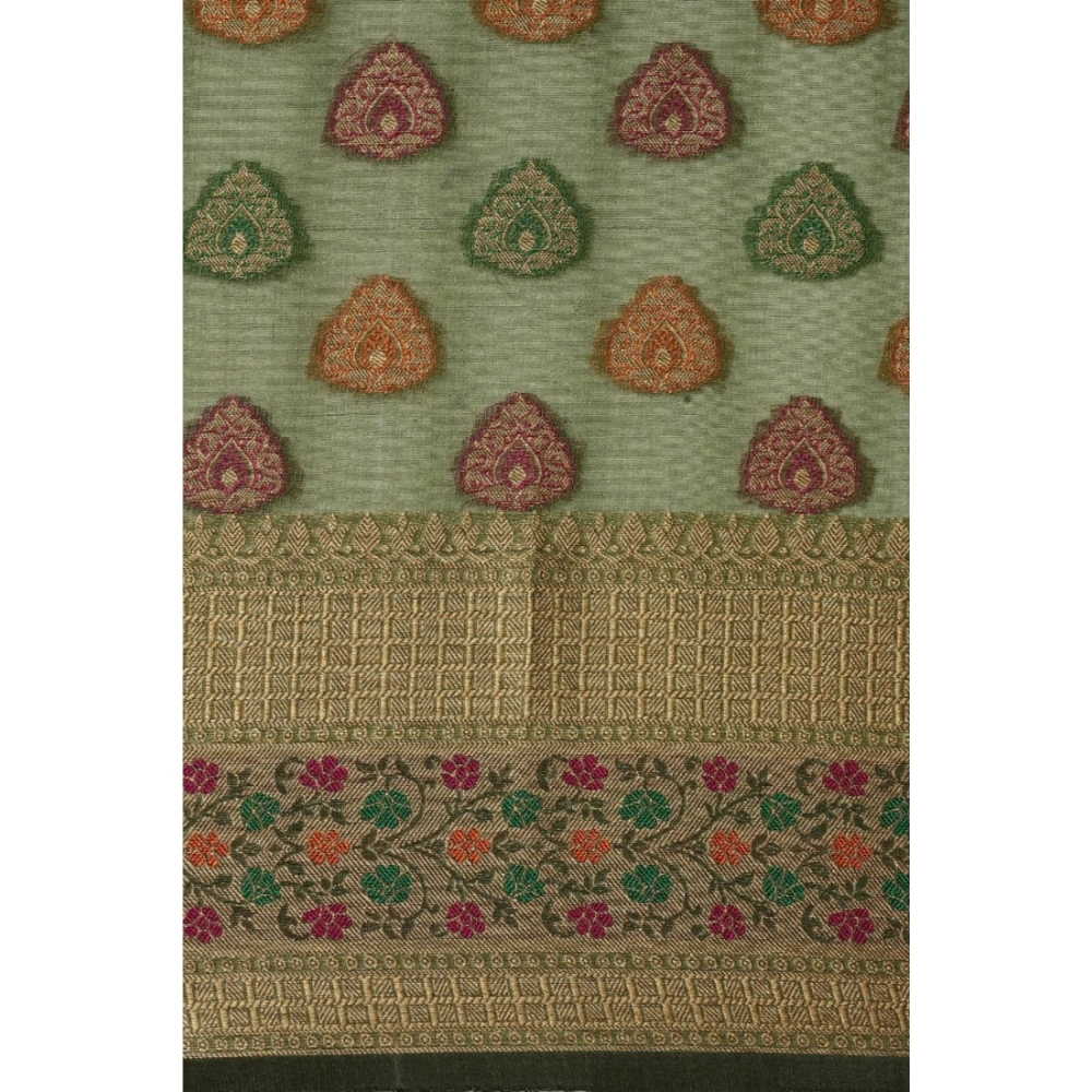 Generic Women’s Banarasi (Spun Cotton) Saree (Pista Green,5-6 Mtrs)