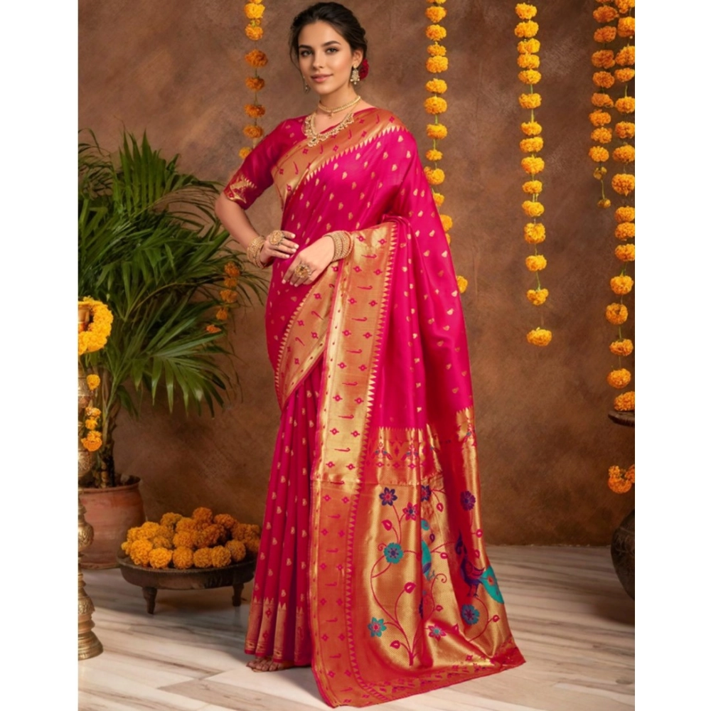 Women’s Silk Blend Zari Weaving Saree With Unstitched Blouse Color: Pink, Material: Silk Blend Pattern: Zari Weaving Blouse Type: Unstitched Blouse Disclaimer: The color of actual product may vary slightly from the images provided due to photographic lighting conditions and difference in screen resolutions.